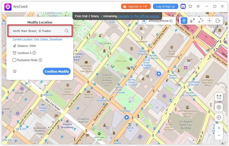 Step 3. Enter a place or click a spot on the map and then click Confirm Modify.