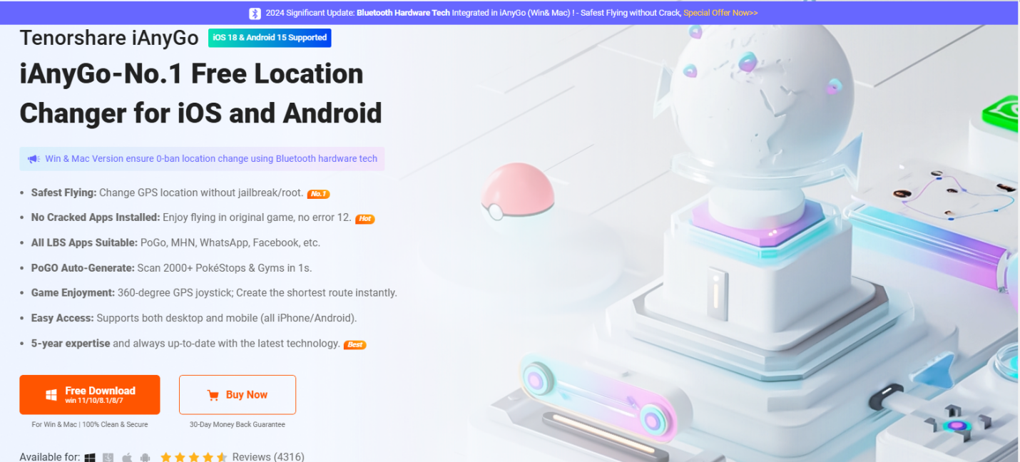 NO.1 Fake iOS Location Changer Tenorshare iAnyGo