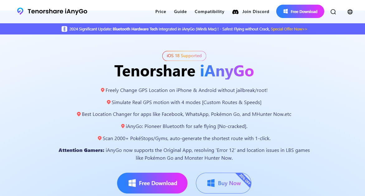 Step 1. Go to the official Tenorshare iAnyGo site on your PC.