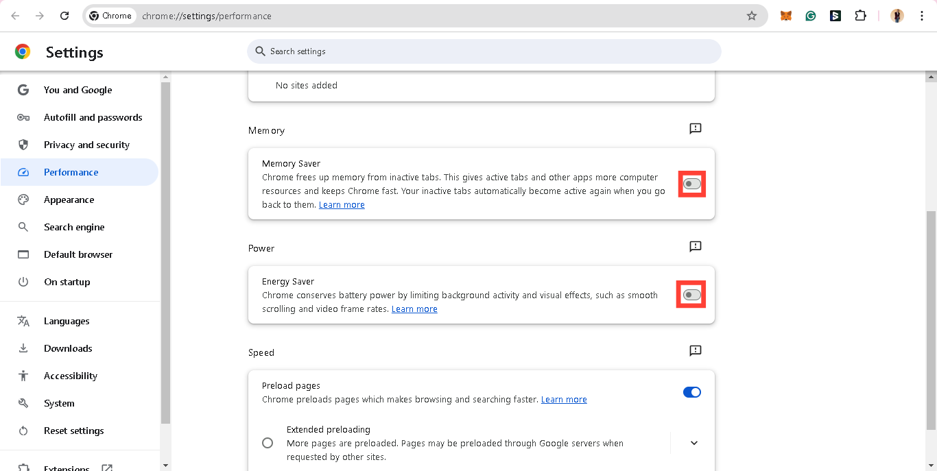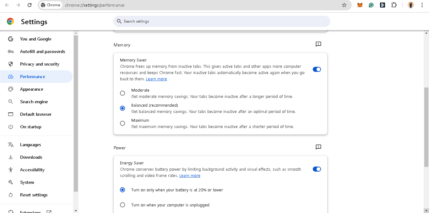 Chrome has built-in performance settings that can help optimize your browsing speed. Enabling these settings ensures that Chrome prioritizes efficiency and makes it run faster.
