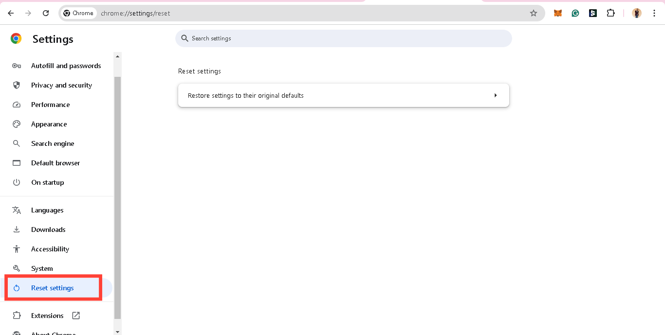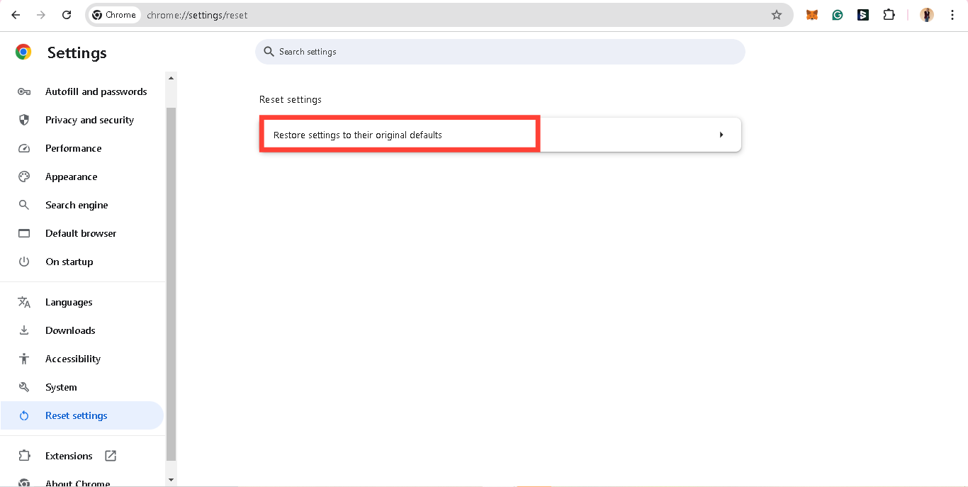 If your browser is still running slow after trying the above methods, resetting Chrome can give it a fresh start. However, doing this on your Chrome restores settings to their original defaults without deleting your bookmarks, history, or saved passwords.