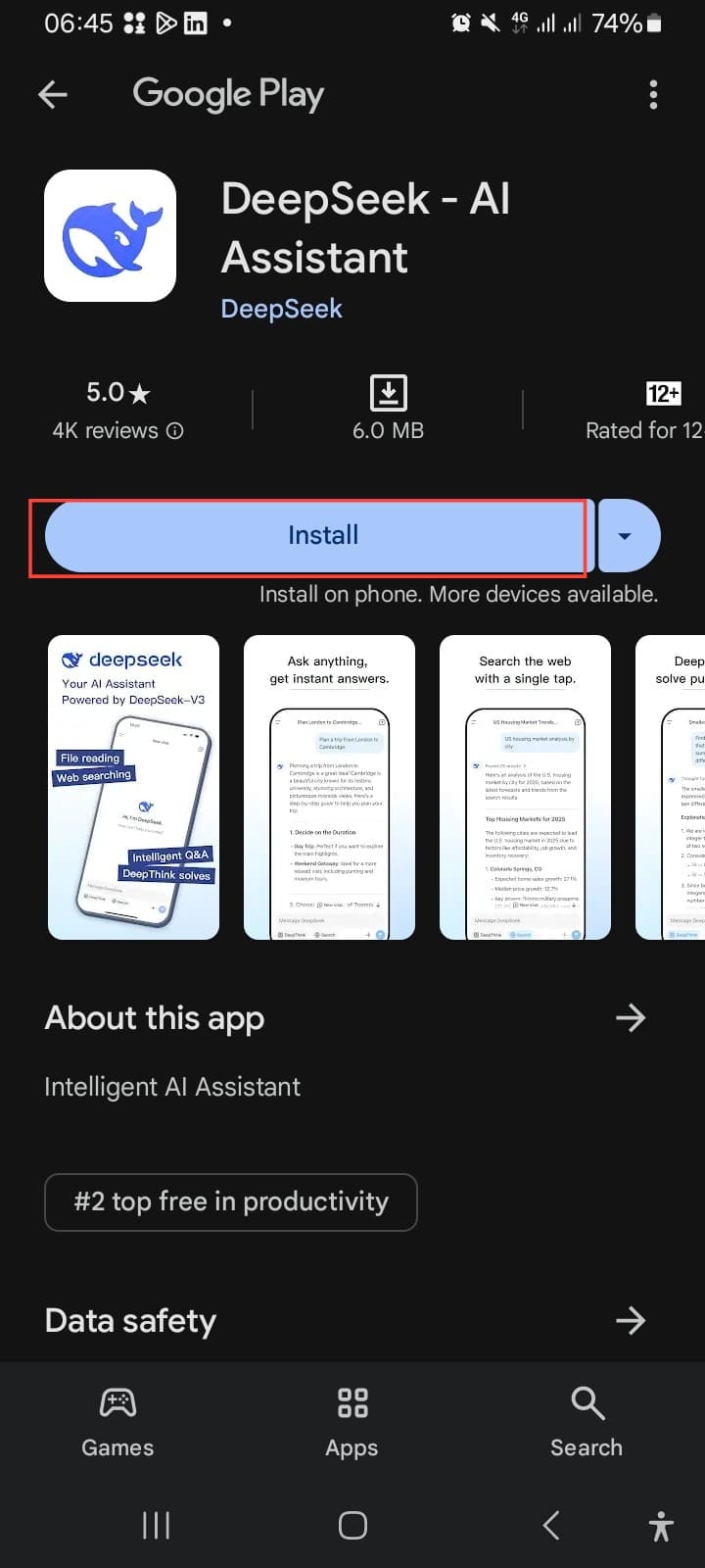 Step 1. Go to the Google Play Store or App Store to download and install DeepSeek