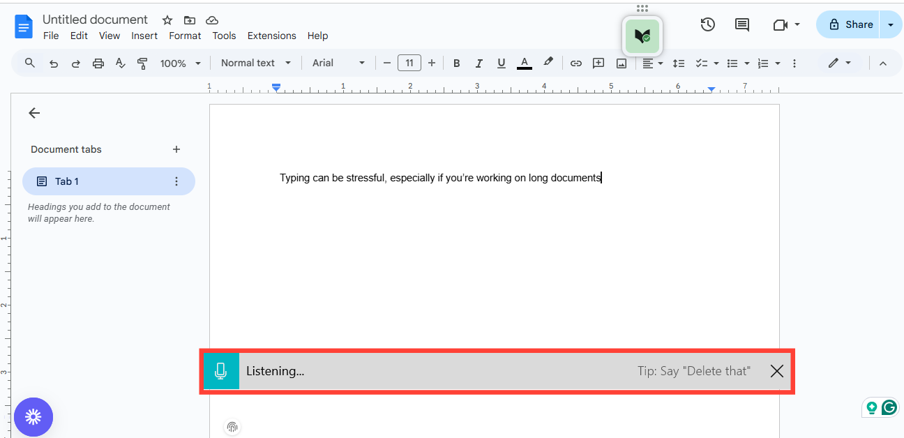 Make sure you’ve got a working microphone, and don’t worry, the accuracy is surprisingly good. It even auto-punctuates (most of the time).