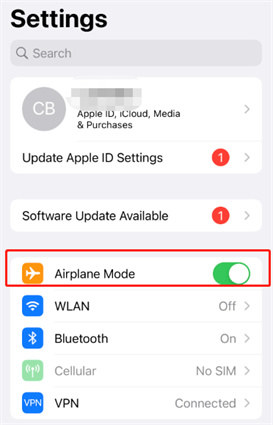 Way 4: Turn on Airplane Mode