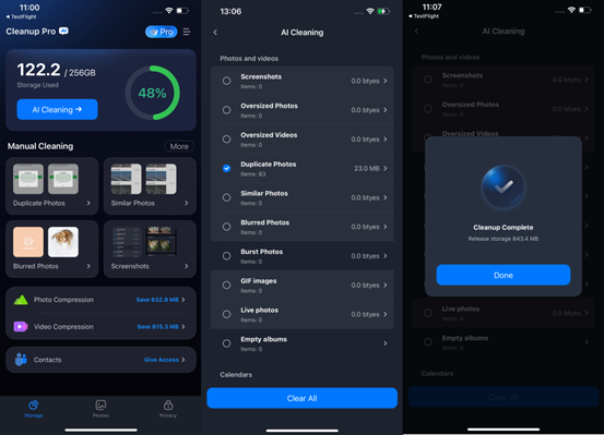 Cleanup Pro is an intelligent AI free iPhone cleaning app. It helps you remove: