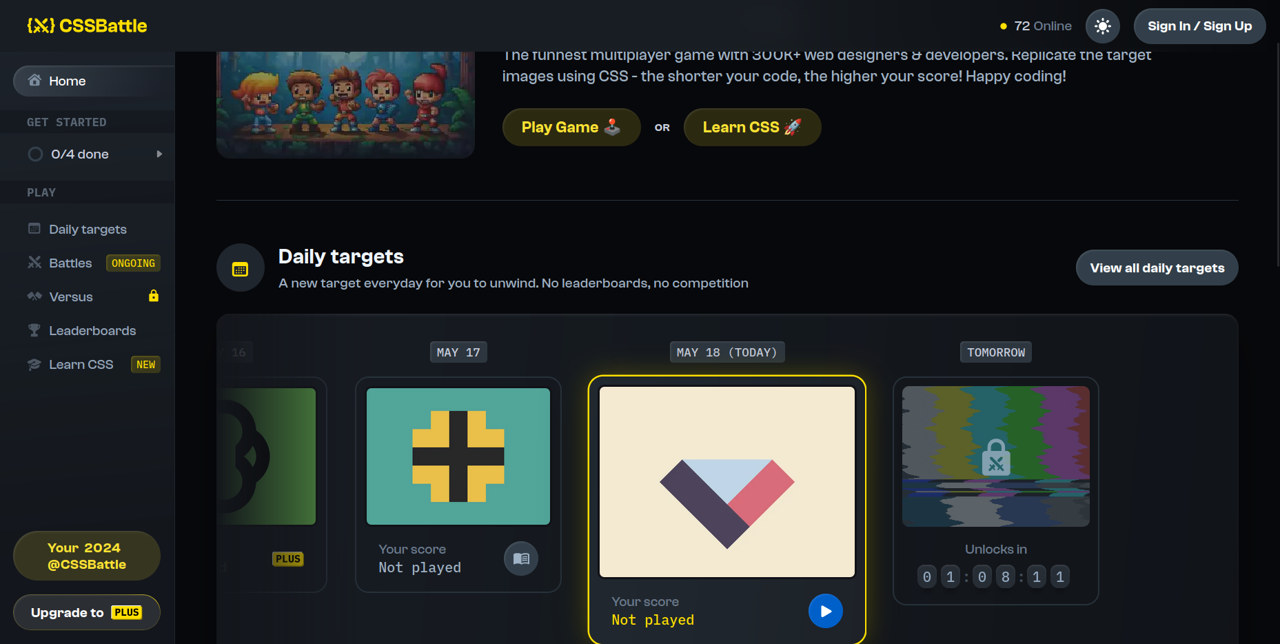 Writing efficient, visually accurate CSS is a key skill, especially when working with design systems or performance-critical projects. CSS Battle pushes you to think outside the box.