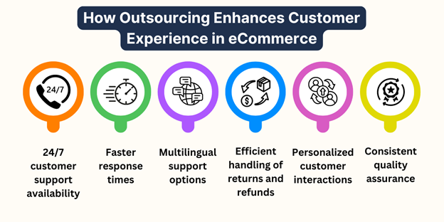 Outsourcing will be the viable option to achieve this. Businesses outsource eCommerce support services to gain access to specialized skills, manage fluctuating demand, and focus on core activities like innovation and customer relations rather than routine tasks. A BPO company will offer various eCommerce support solutions to online businesses to improve efficiency and productivity.