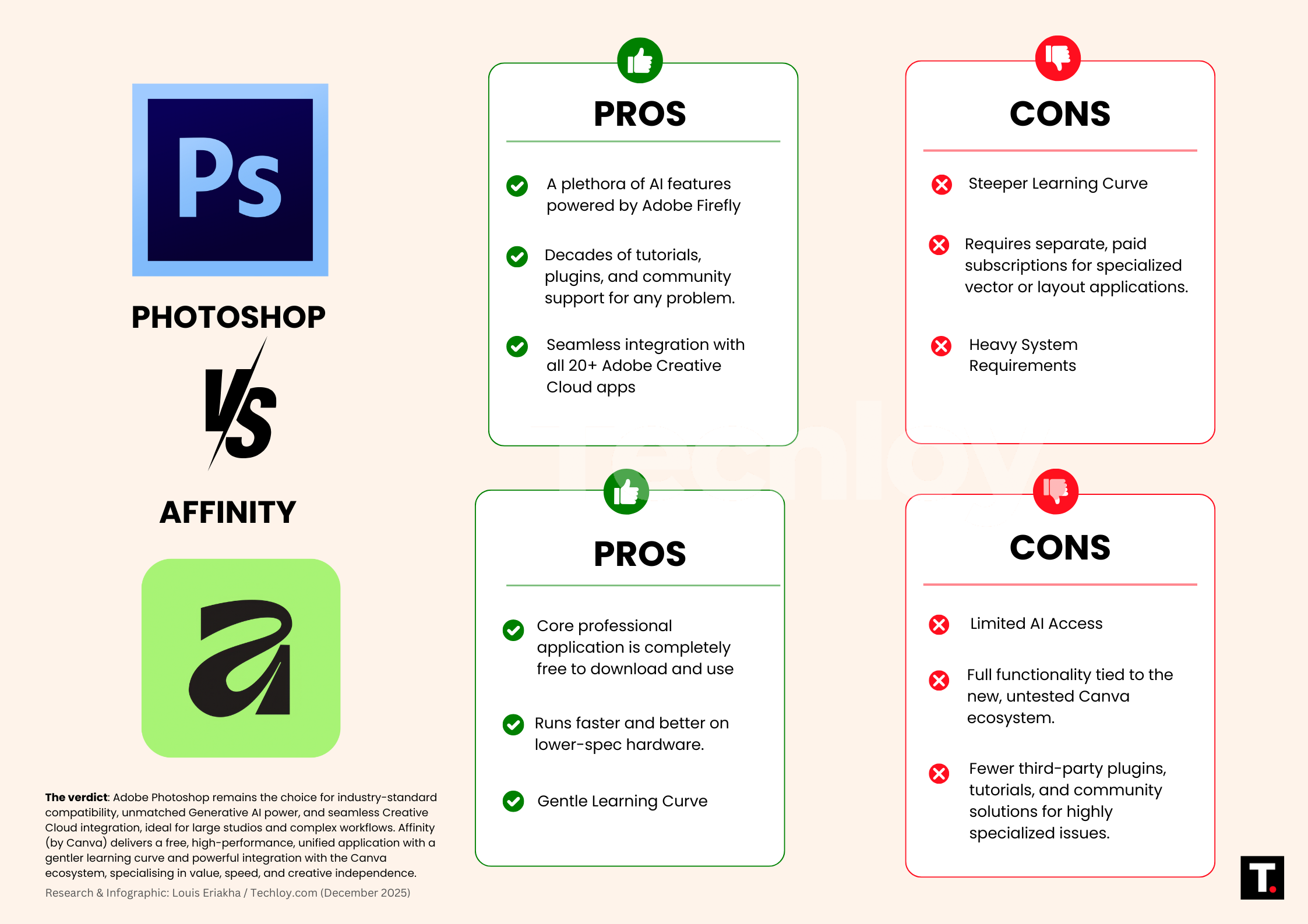Lately, it feels like every piece of software we rely on has decided it needs a monthly payment. From our streaming services to our favourite coffee, everything is a subscription. That’s why the battle between the industry giant, Adobe Photoshop, and the suddenly revitalised competition, Affinity Photo, is such a critical one. What used to be a clear choice, 'Photoshop reigns supreme', is now a genuine toss-up, forcing creators to weigh years of dominance against a modern, budget-friendly challenger.