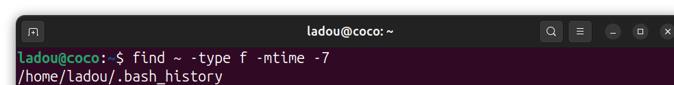 This lists files in your home directory (~) edited in the last week. -mtime -7 means "modified within 7 days." This is useful for checking recent changes or backing up recent work.