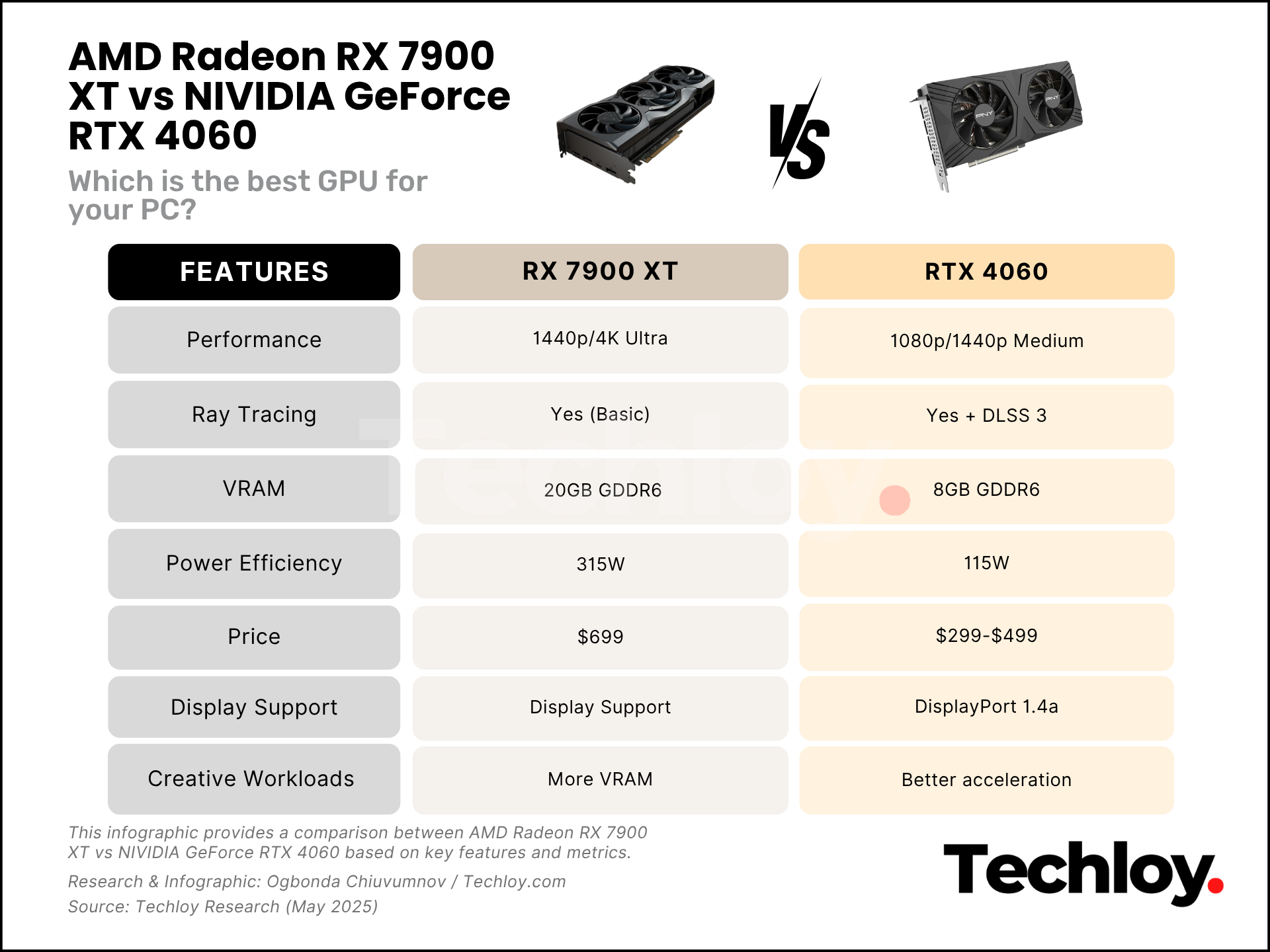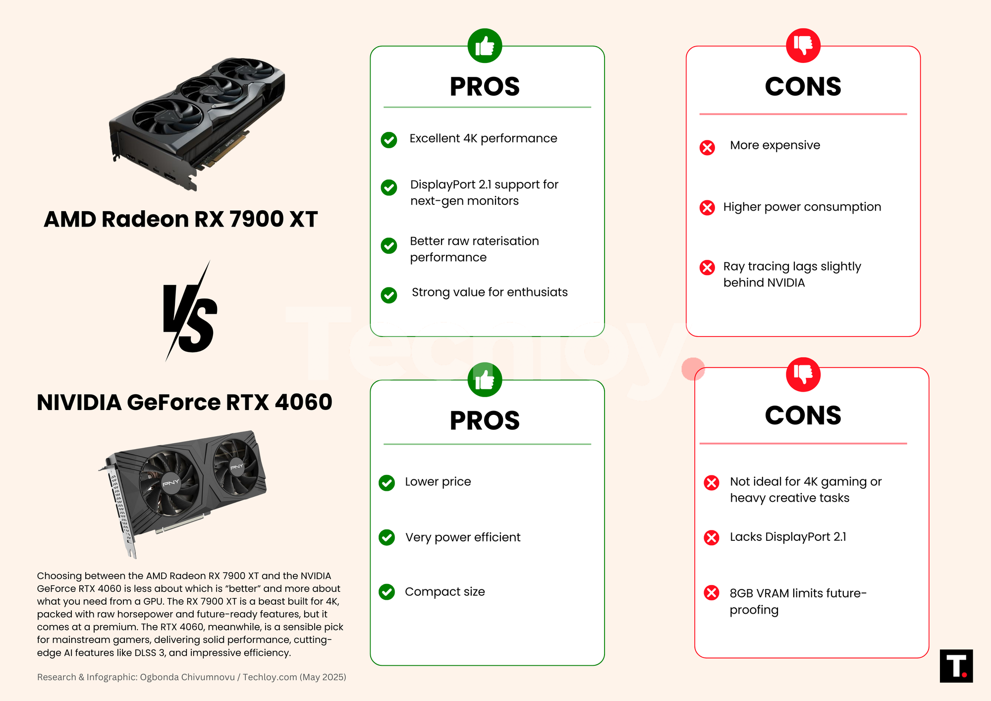 Enter two very different contenders: AMD’s Radeon RX 7900 XT and NVIDIA’s GeForce RTX 4060. One’s built for raw power, the other for smart efficiency. But which one actually fits your needs?