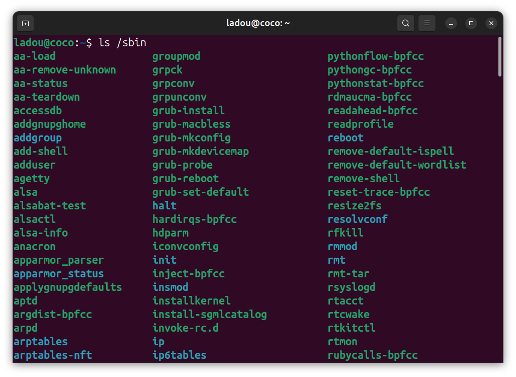 - /sbin contains administrative tools like sudo, fdisk, reboot, etc, meant for the root user. Regular users can’t run these by default because they affect the whole system. For instance, if you want to install a system-wide application, you'll need to use sudo, which would require admin authentication.
