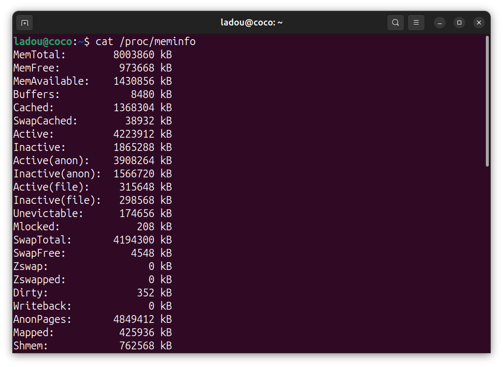 - The /proc directory exposes running processes and system stats. For example, /proc/cpuinfo contains CPU details. And /proc/meminfo contains memory usage.