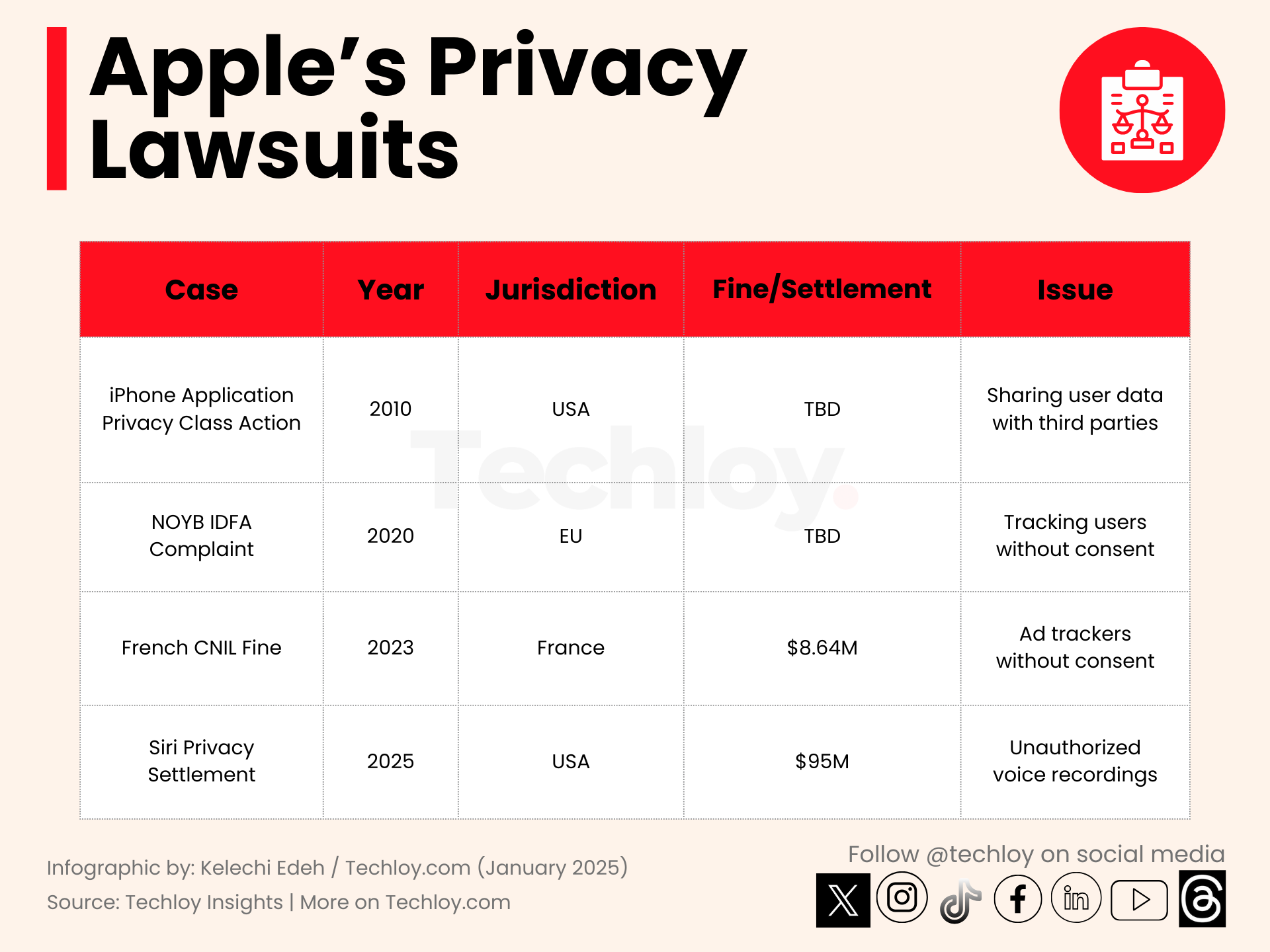 But while the financial impact may be negligible, the damage to Apple’s carefully crafted reputation is far more concerning. For one, this isn't the first time Apple has had to pay for privacy-related issues. In early 2023, France’s data protection authority, CNIL, fined Apple €8 million ($8.64 million) for failing to obtain user consent before placing ad trackers on iPhones running iOS 14.6.