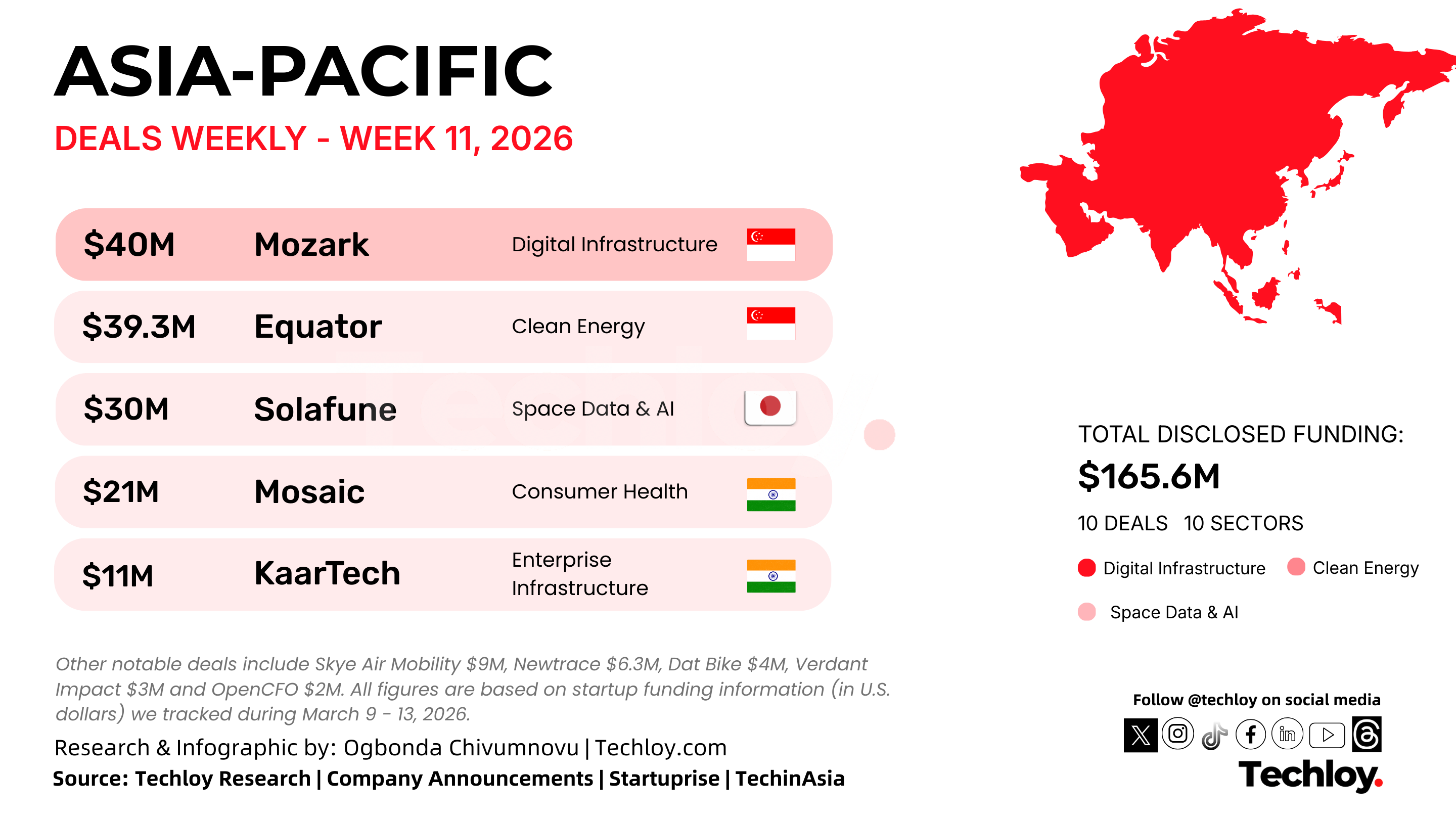 This week’s funding activity reflects a clear pattern across Asia’s startup ecosystem: investors are backing infrastructure that powers digital services, energy systems, and industrial innovation. From renewable energy projects and satellite intelligence platforms to enterprise infrastructure software and drone logistics networks, capital is flowing toward startups solving structural challenges rather than short-term consumer trends.