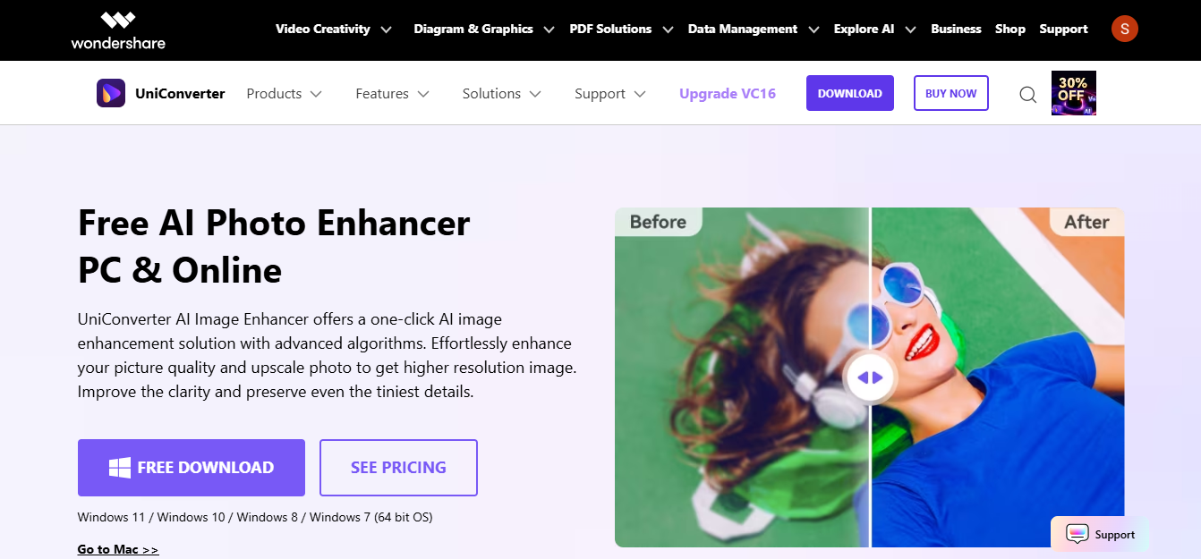 Best for: Wondershare AI Image Enhancer is best for enhancing photo quality and restoring images with ease.
