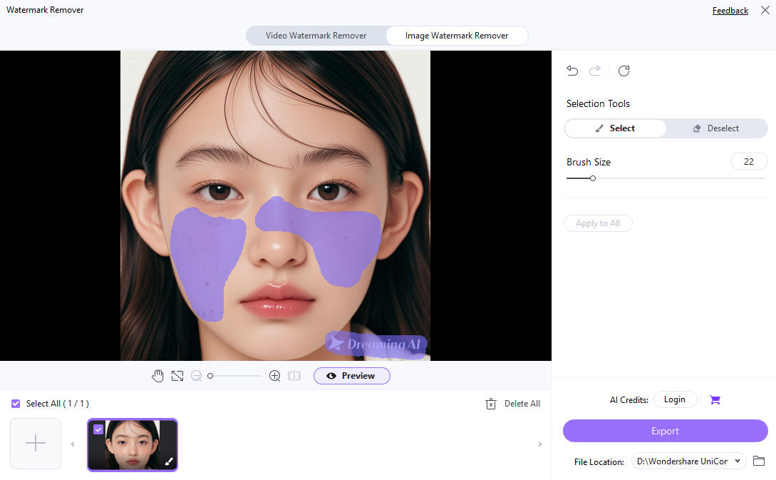 - AI-Powered Removal: Automatically detects and eliminates blemishes with high precision.