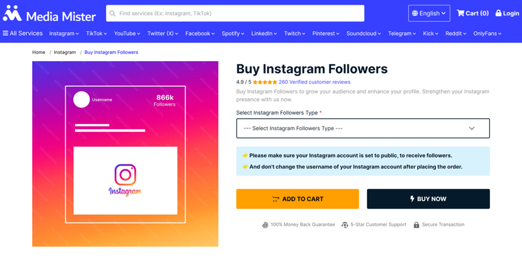 Media Mister is the best site to buy Instagram followers because it combines real, country-targeted followers with a clear 60-day refill and a 30-day money-back guarantee if an order is not completed.
