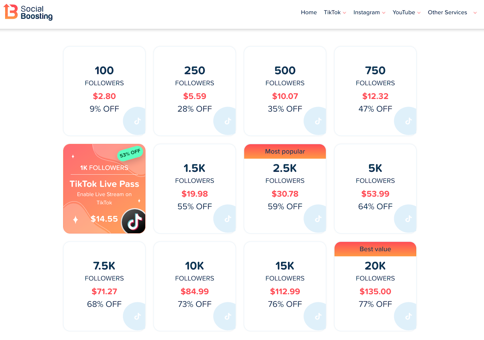 Plus, SocialBoosting offers genuine followers and likes at fair prices that remain more affordable than comparable quality services in the market. Transparent, dependable, ethical, and effective social media growth for TikTok and Instagram has been their specialty for over a decade. Order TikTok followers and likes from SocialBoosting today.