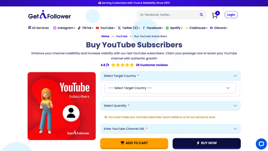 1. GetAFollower – Overall Best for Buying YouTube Subscribers