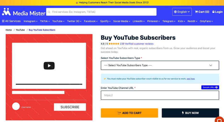 Operating since 2012, they've built valid experience handling social media engagements across multiple platforms. Delivery takes 2-5 days, with subscriber additions distributed evenly. Media Mister tracks every subscriber for 60 days after delivery, replacing any who unsubscribe automatically.