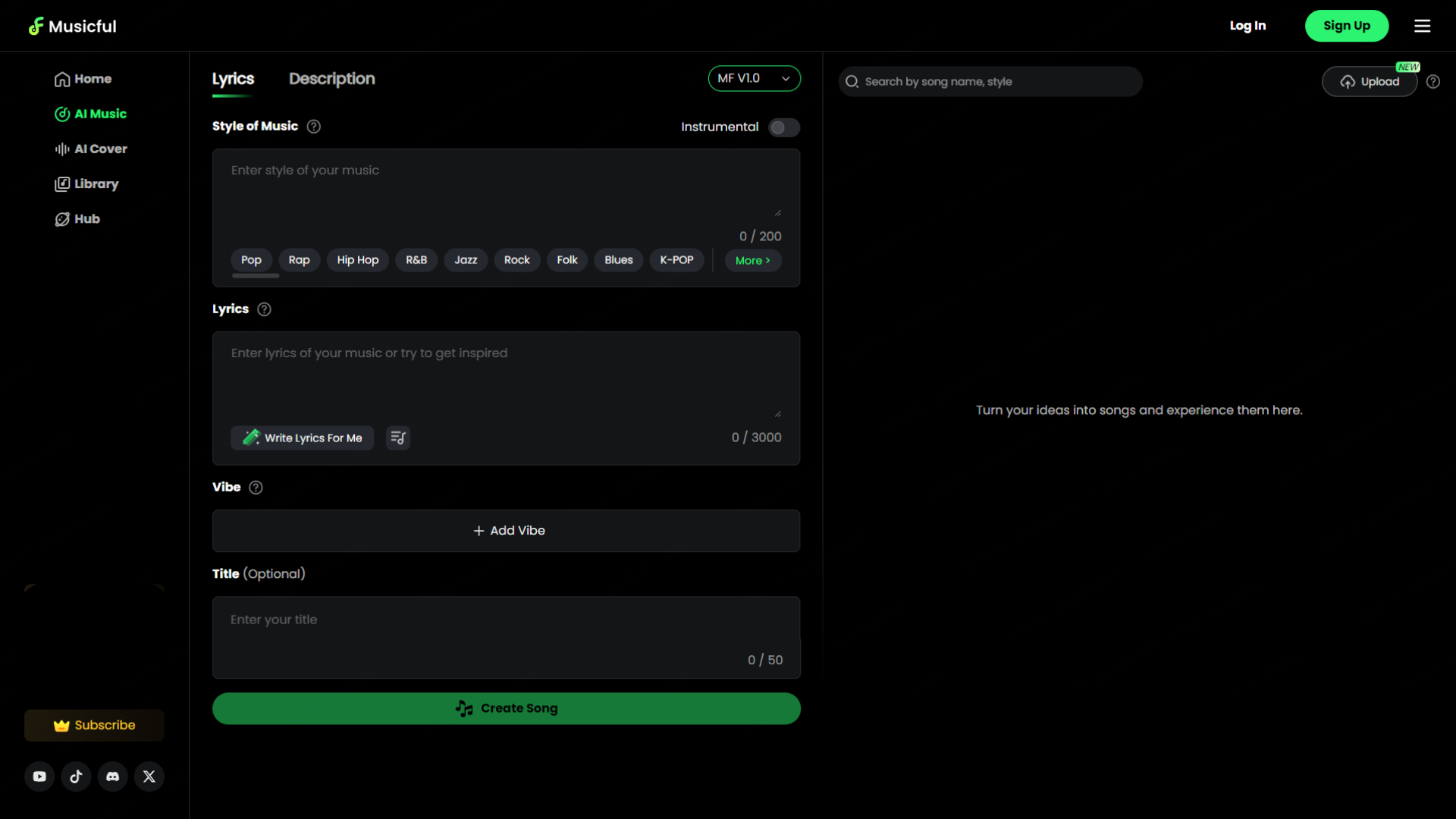 In text-based mode, users input original lyrics. The system parses the structure—identifying line breaks, rhymes, and syllabic stress—and maps the content onto a beat framework. Musicful supports this by letting users define genre and flow characteristics, generating matching vocal performances and instrumentals in response.