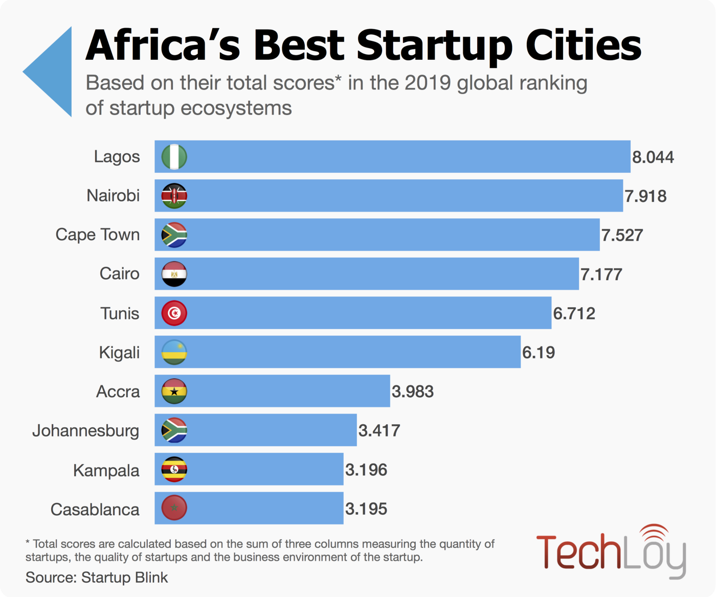 According to StartupBlink’s 2019 Global Startup Ecosystem Rankings Report which analyses startup ecosystems in 1,000 cities and 100 countries, Lagos has the best startup ecosystem in Africa, followed by Nairobi and Cape Town.