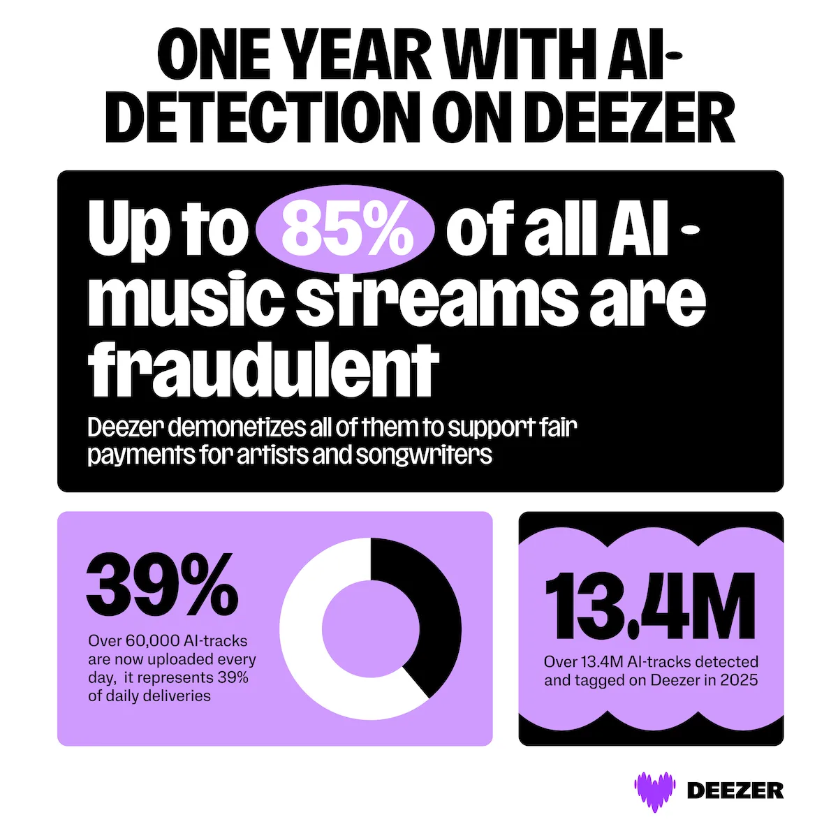 This move comes as AI-generated music uploads continue to surge across streaming platforms worldwide. Deezer now receives roughly 60,000 fully AI-generated tracks per day, bringing the total number of AI-detected songs on its platform to 13.4 million. By comparison, in June last year, AI tracks accounted for just over 20,000 daily uploads, or about 18% of new content. The company says the volume has nearly tripled in under a year.