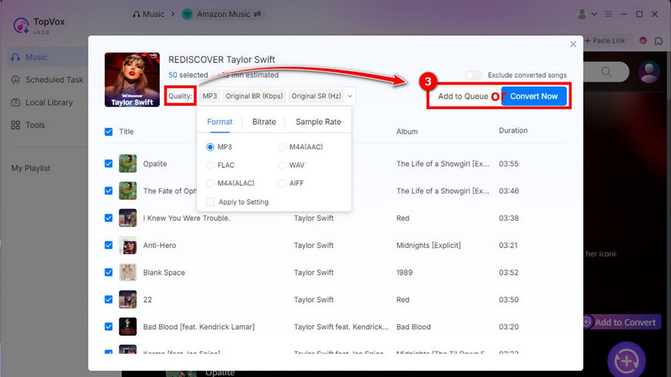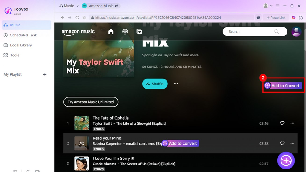 TopVox All Music Converter is a reliable solution for downloading music from Amazon Music forever, giving you the flexibility to save songs regardless of the plan you're using. In our tests, downloading a playlist with 77 songs to 320kbps MP3 takes just 15 minutes.