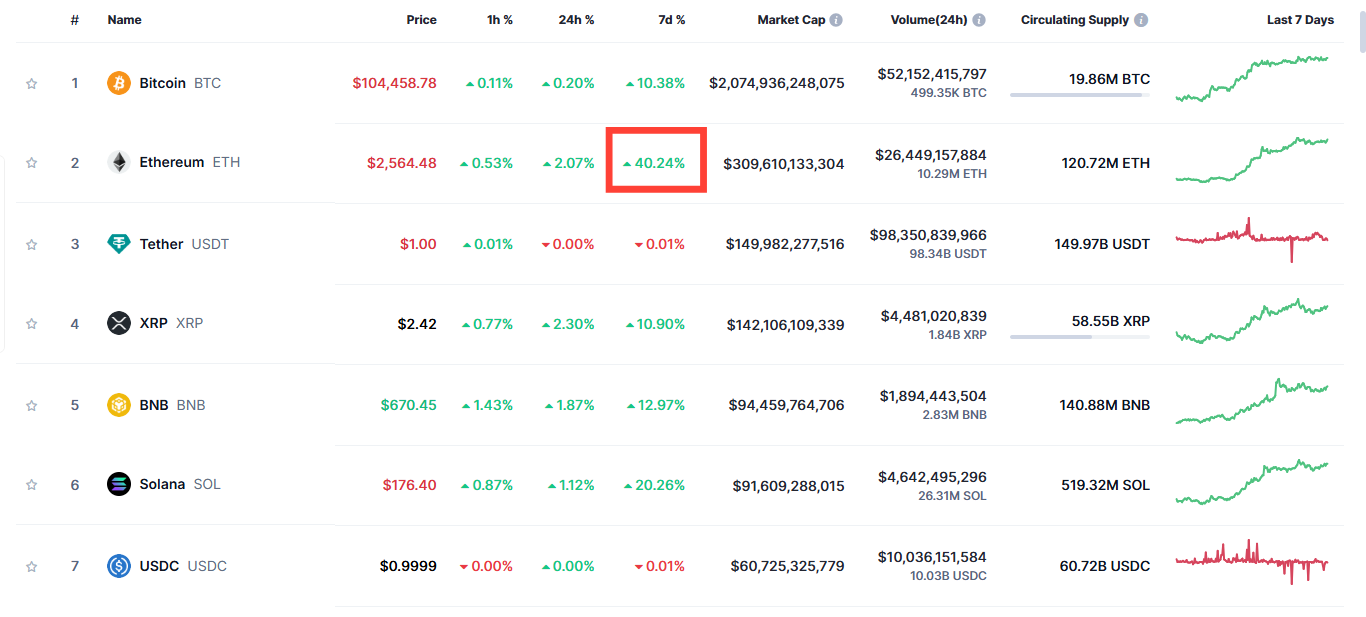 After months of being stuck below US$2000, Ethereum finally broke through the US$2,000 resistance level again. It wasn’t a slow or quiet move, as we have seen in the past few weeks. The move happened alongside Bitcoin crossing US$100,000, which woke the whole market up. And this time, ETH didn’t just follow passively. It led.