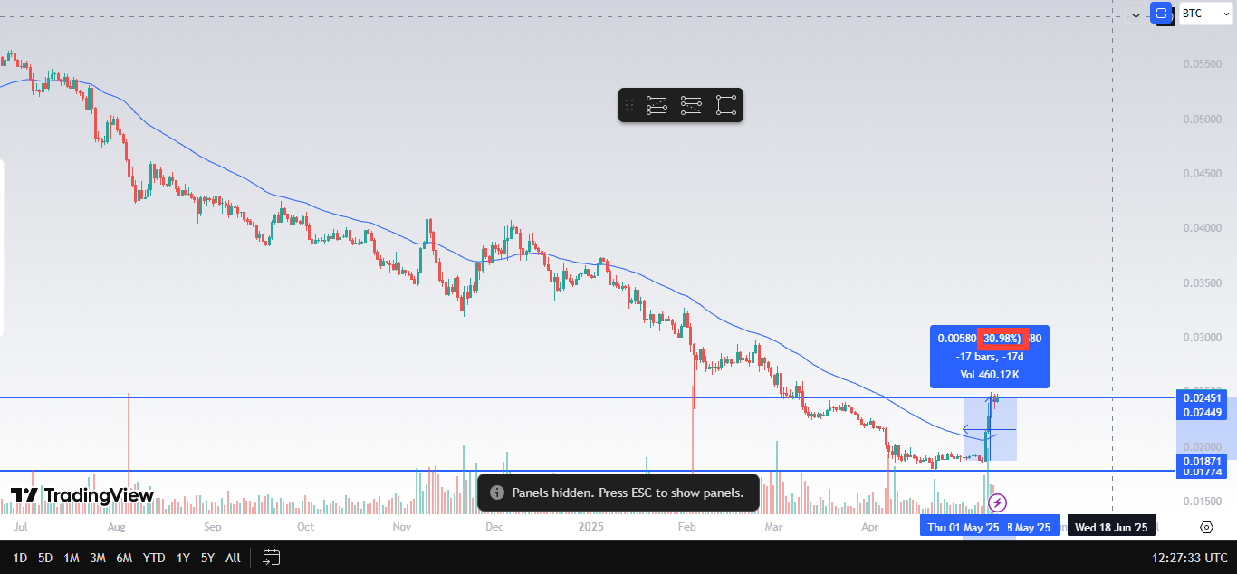 In the past week alone, ETH has climbed more than 30%, including a 20% pop in a single day (May 10). We haven't witnessed such a price surge since the apex of the 2021 cycle. On top of that, ETH’s value relative to Bitcoin also spiked over 20%, from 0.0187 to 0.0240, something we haven’t seen in a while.