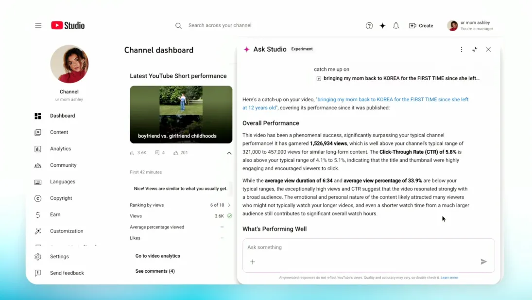 At the heart of the announcements is Ask Studio, an AI chatbot built into YouTube Studio. Instead of creators digging through analytics dashboards, they’ll be able to ask the bot how a video is performing, what viewers are saying, or even for suggestions on how to improve their editing style. YouTube describes it as a “creative partner”, the idea being that insights are surfaced quickly enough to help guide a creator’s next move.