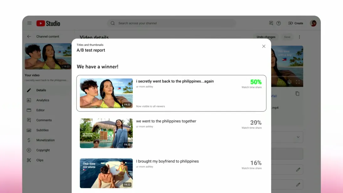 To round it out, YouTube is expanding its A/B testing feature, allowing creators to trial up to three different titles and thumbnails per video. The company says creators have already run more than 15 million tests since the tool’s early release.
