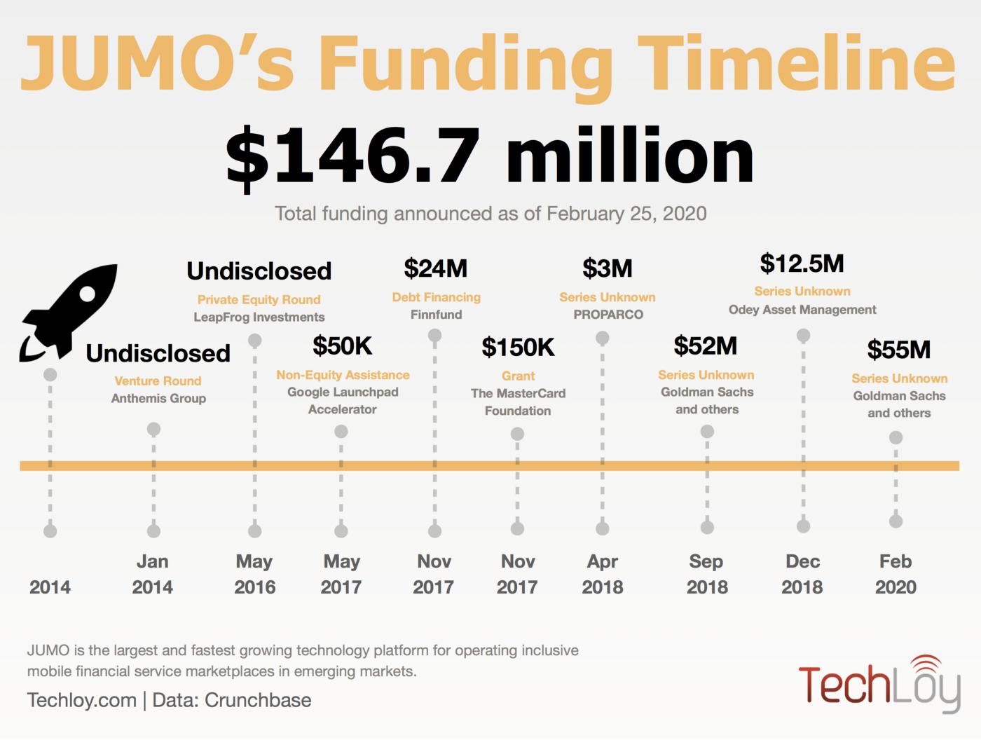 Techloy’s latest infographic shows a timeline of JUMO’s funding, since its launch six years ago.