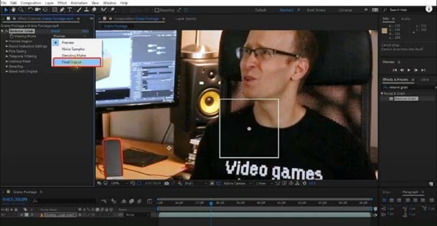 Step 4: Now, in the effect's settings, select "Noise Reduction." Adjust these settings to reduce graininess and make the video look more natural.