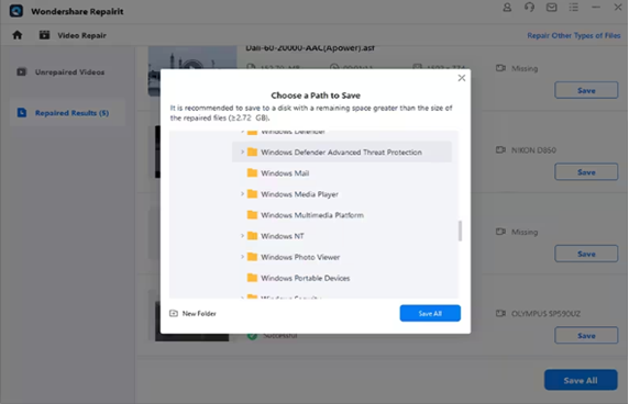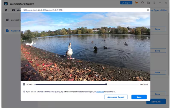 Step 4: The tool will take about 5-10 minutes to repair the videos. Once the repair process is complete, you can preview the repaired videos, click on the "Save All" button, and save them onto your PC. That’s it!