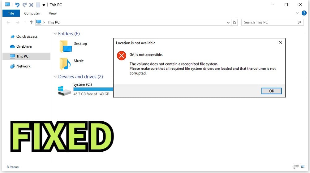 Sometimes, when you try to access your flash drive or memory card through Windows File Explorer, you might receive a warning message that says, "The volume does not contain a recognized file system."