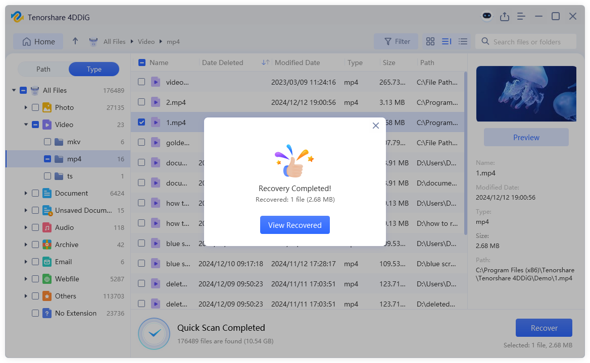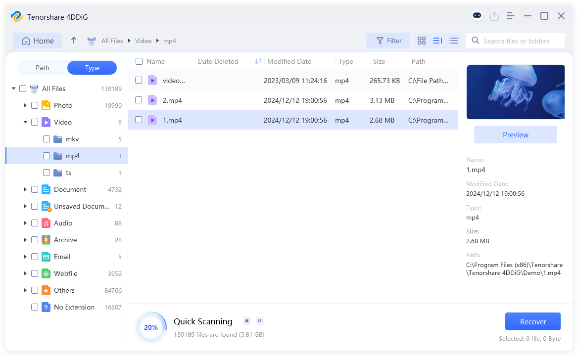 - Step 3: 4DDiG offers 2GB of free data recovery. To recover more, you'll need to upgrade to the PRO version. However, before committing to a full recovery, 4DDiG allows you to preview recoverable files to check if they are intact. If you're okay with the results, select the files you want and hit the "Recover" button.