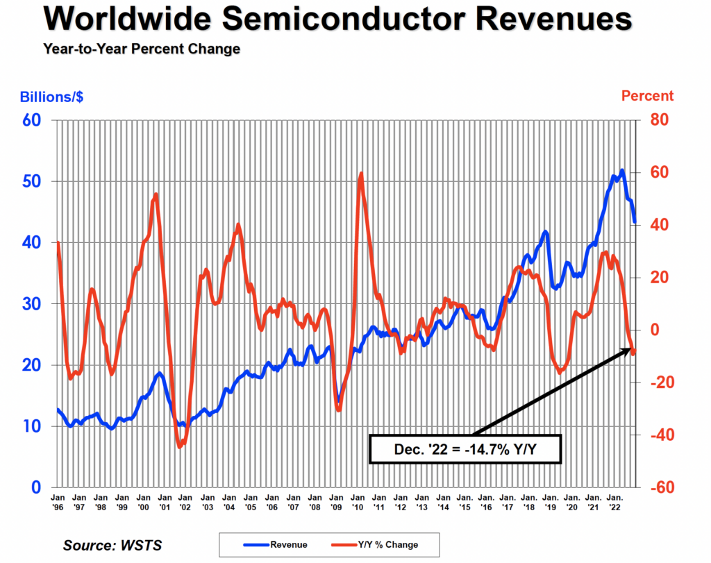The global semiconductor market experienced significant ups and downs in 2022, with record-high sales early in the year followed by a cyclical downturn later in the year amid macroeconomic conditions and short-term fluctuations in sales due to market cyclicality.