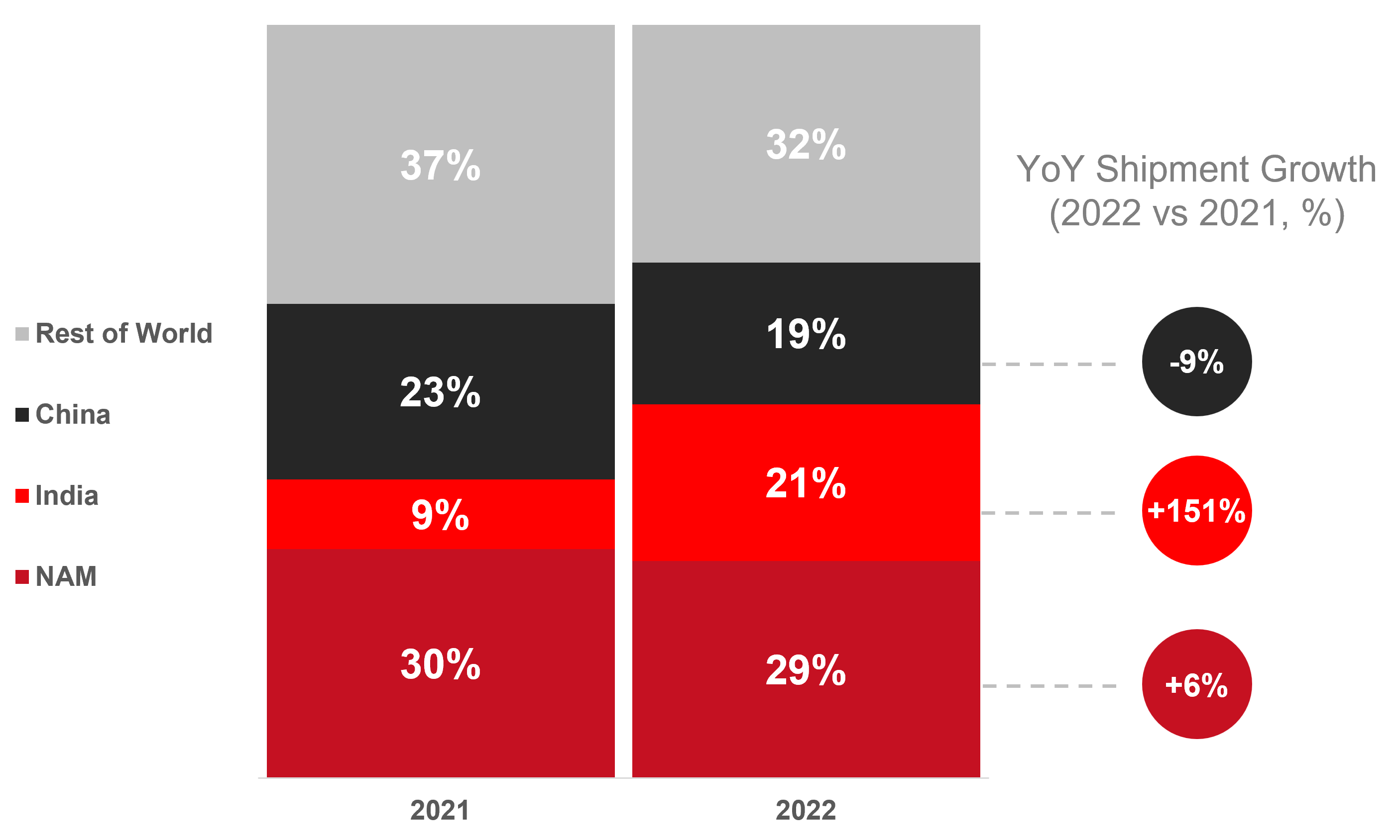 In terms of regions, North America was the largest smartwatch market remaining in first place for a full year again. The region showed a significant increase in shipments driven by the strong performance of Apple in the fourth quarter. However, North America’s share decreased slightly as India emerged as another core region in 2022.