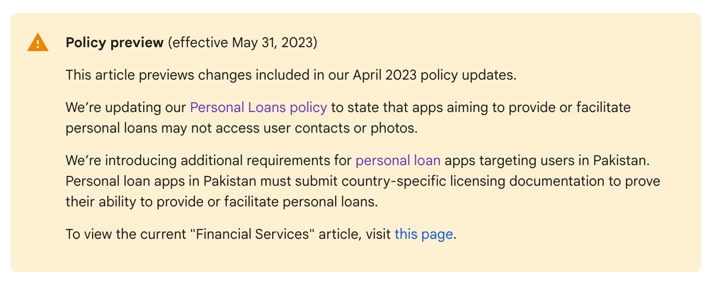 Google has also introduced specific licensing documentation requirements for apps appearing on the Play Store offering personal loans in Pakistan. In the past, Google has been criticized for not doing enough to tackle predatory loan apps.