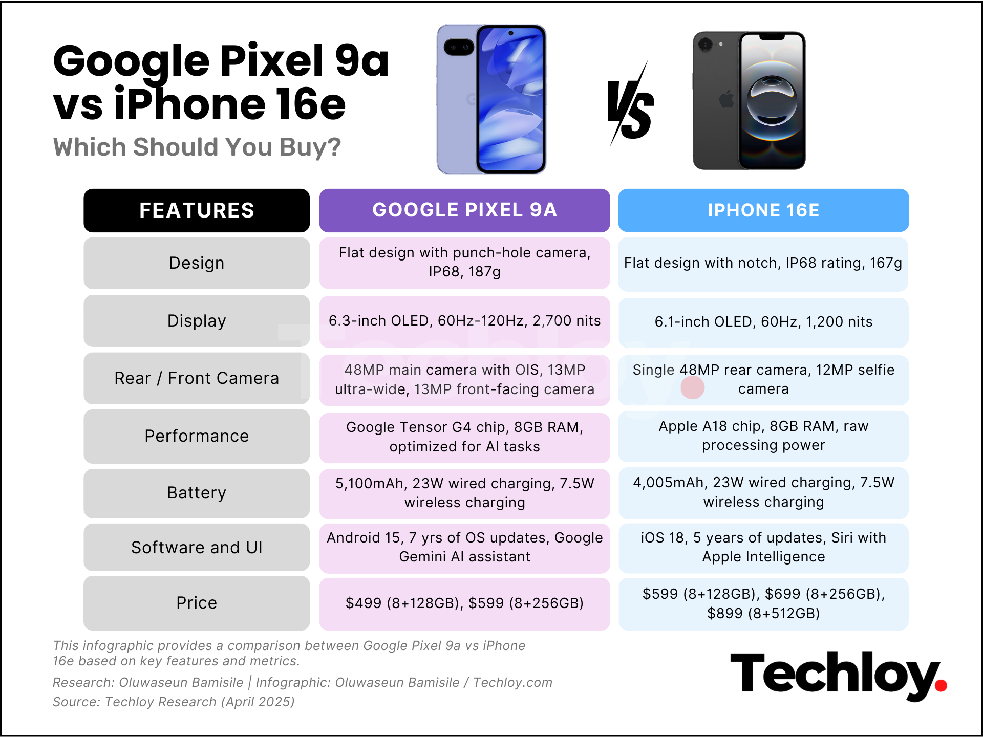 Winner: Pixel 9a. Longer software support and smarter AI tools give it the edge.
