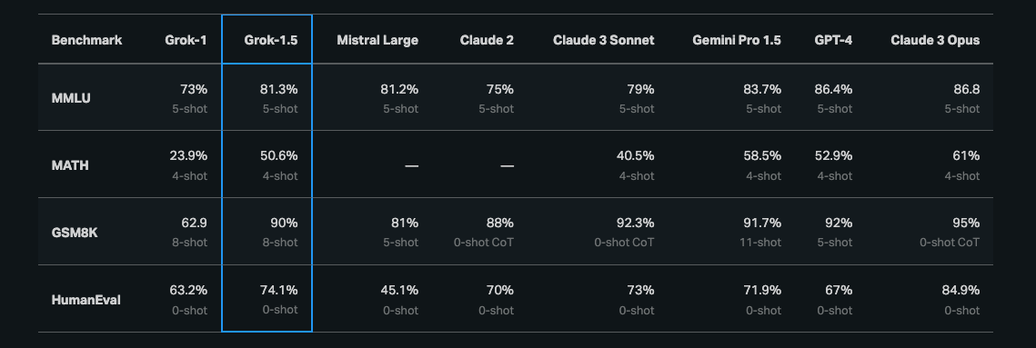 The company says that its latest AI model is capable of long-context understanding and advanced reasoning, boasting huge improvements in its performance in coding and math-related tasks from Grok-1, although below Gemini Pro 1.5 and GPT-4, based on a benchmark analysis by xAI.