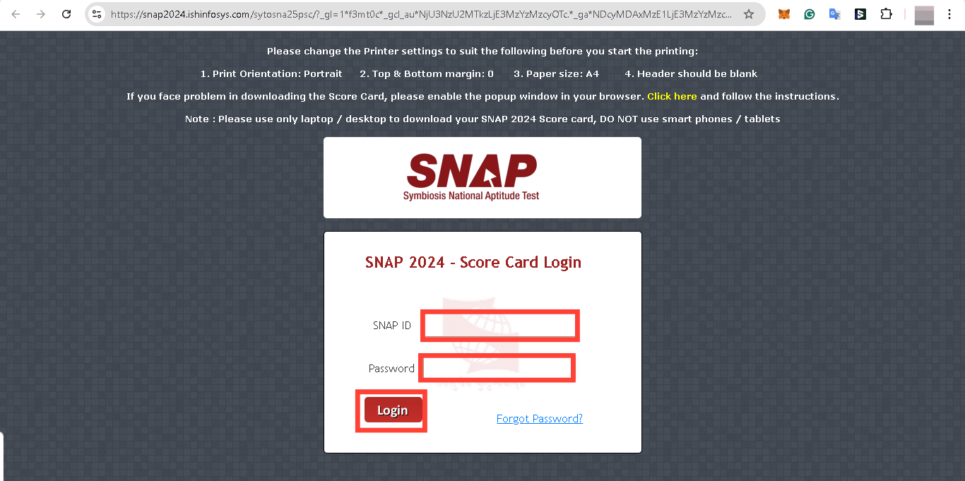 Once you are logged in your SNAP 2024 result will be displayed on the screen for you to review.