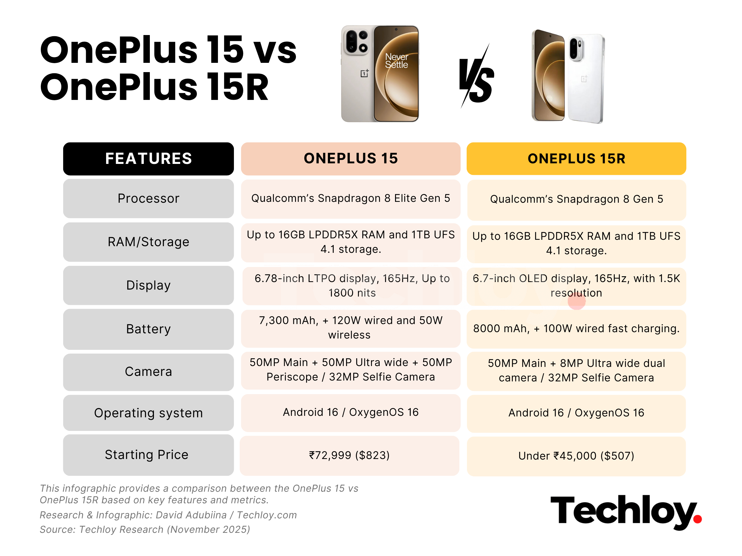That’s a comfortable gap from the main OnePlus 15, which starts at ₹72,999 ($823), and a big part of why the R lineup continues to appeal to performance-focused buyers who don’t want to spend flagship money.