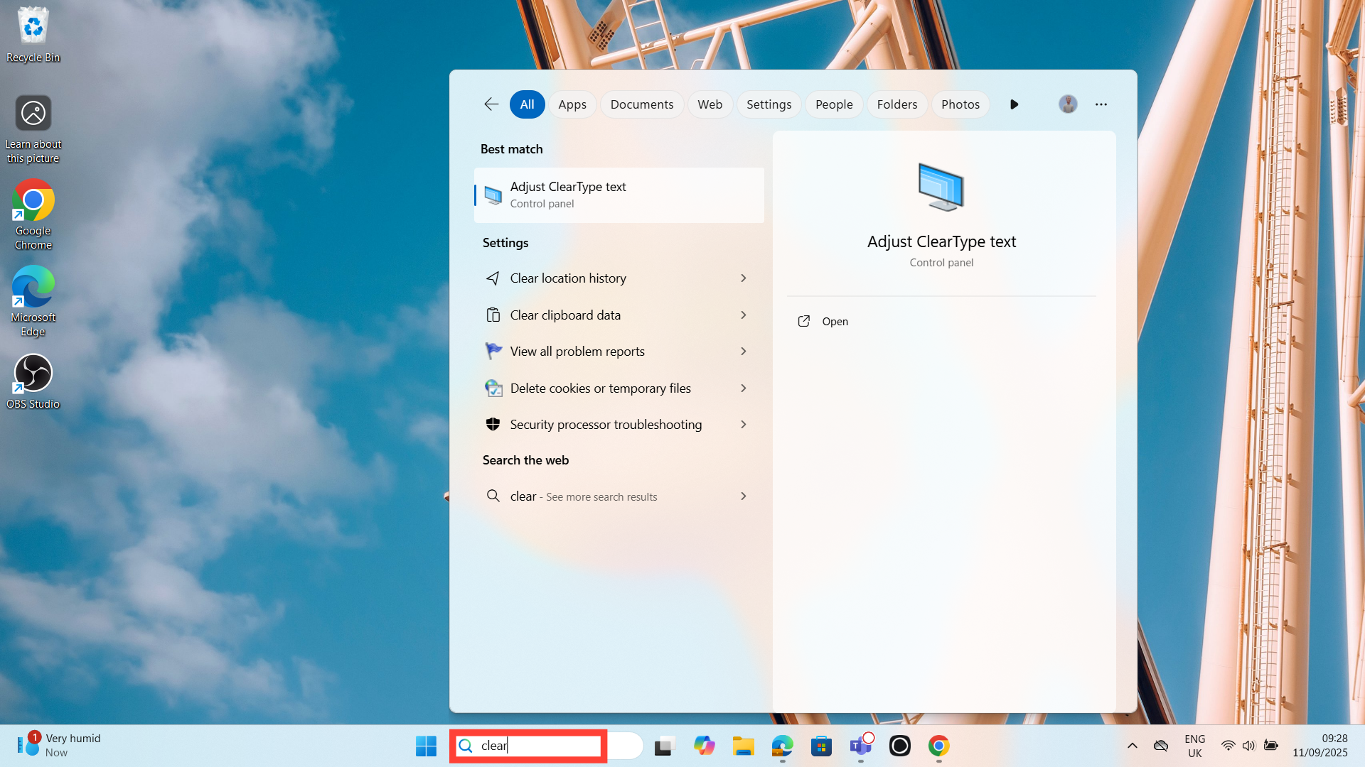 Step 1. In your Windows search bar, type "ClearType Tune."