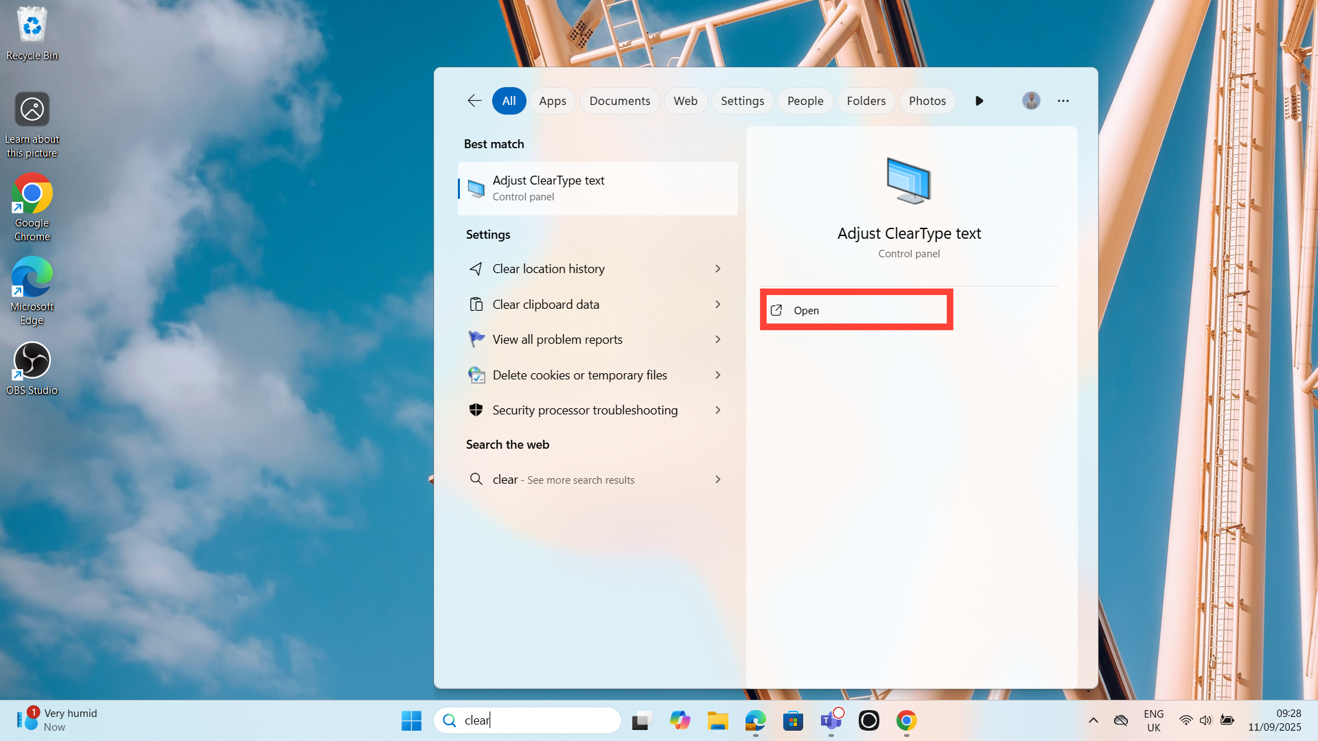 Step 2. Click on the "Open" option that comes up — this will open the ClearType Text Tuner.