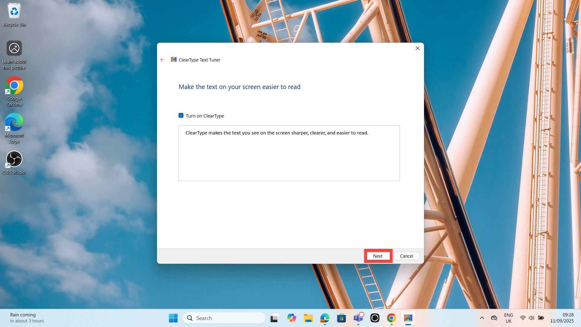 Steps to set up ClearType