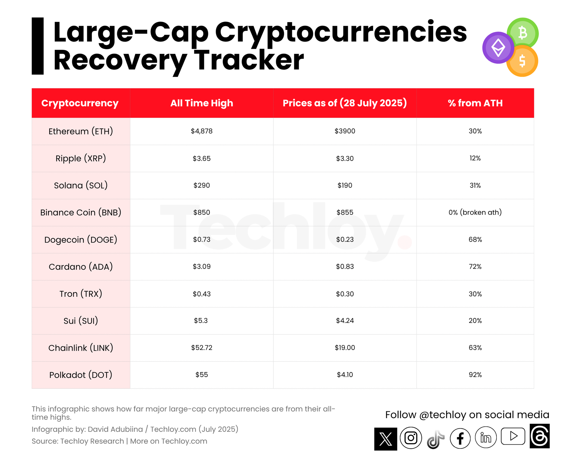 Looking at these numbers, it’s clear that not all coins recover the same way, or at least the same pace. Some like BNB are already writing new records, while others like DOT and DOGE, are still trying to find their footing in this cycle. But that’s the nature of crypto: it moves in waves, and each coin has its own narrative, momentum, and moment.