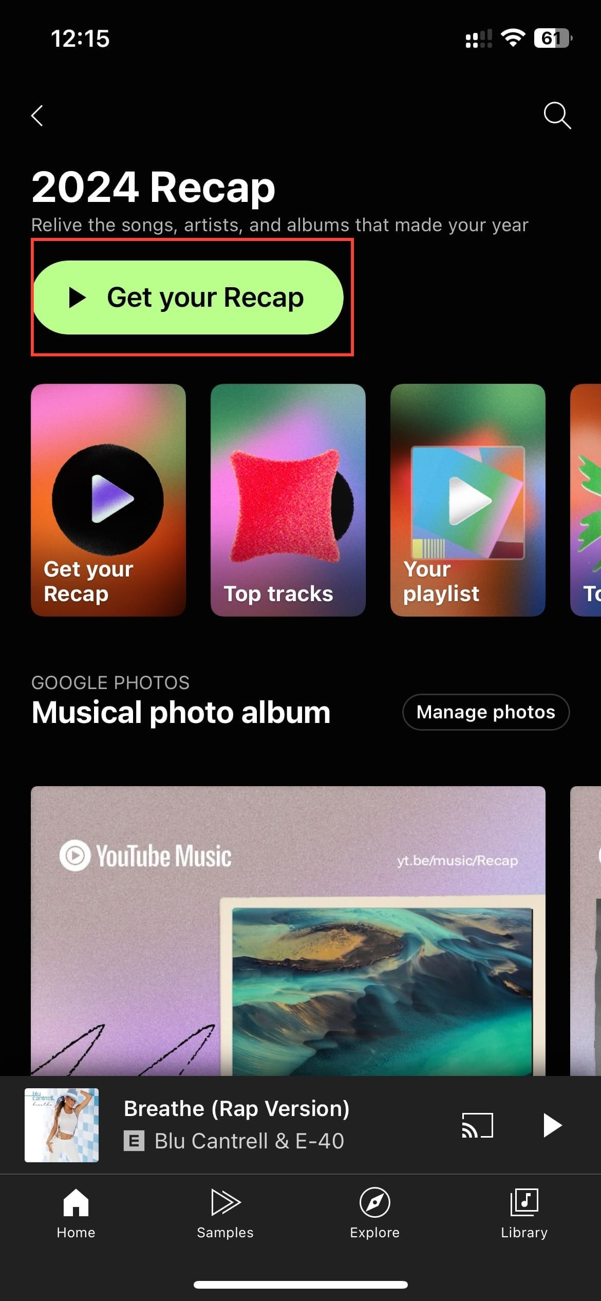 Steps to access 2024 Music Recap on YouTube Music