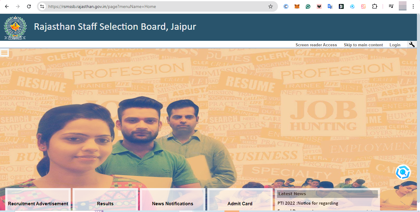 Step 1. Open your browser and go to the official website of the Rajasthan Subordinate and Ministerial Staff Selection Board (RSMSSB)